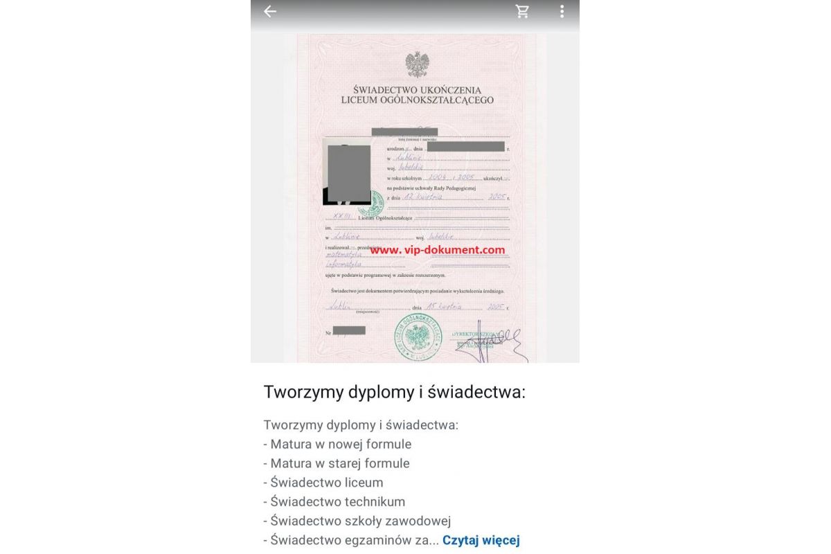 Kupię świadectwo maturalne, dyplom uczelni